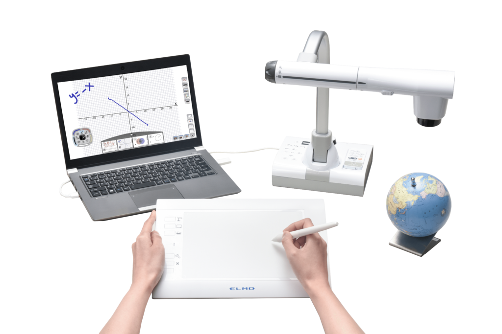 The CRA-2 can also go PC-free when using a compatible ELMO Document Camera. Inserting the wireless receiver in the USB port of the Document Camera activates the embedded software for remote control of the document camera as well as tools to annotate on the camera image or a whiteboard.